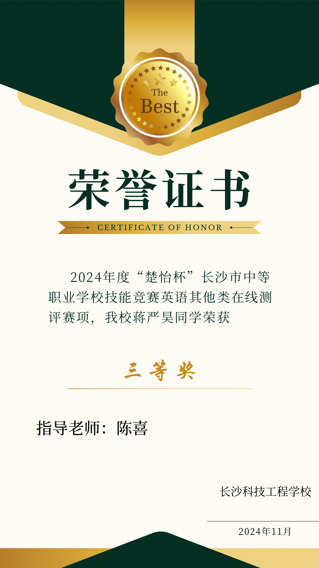 英語服務(wù)類、其他類在線測評賽項三等獎