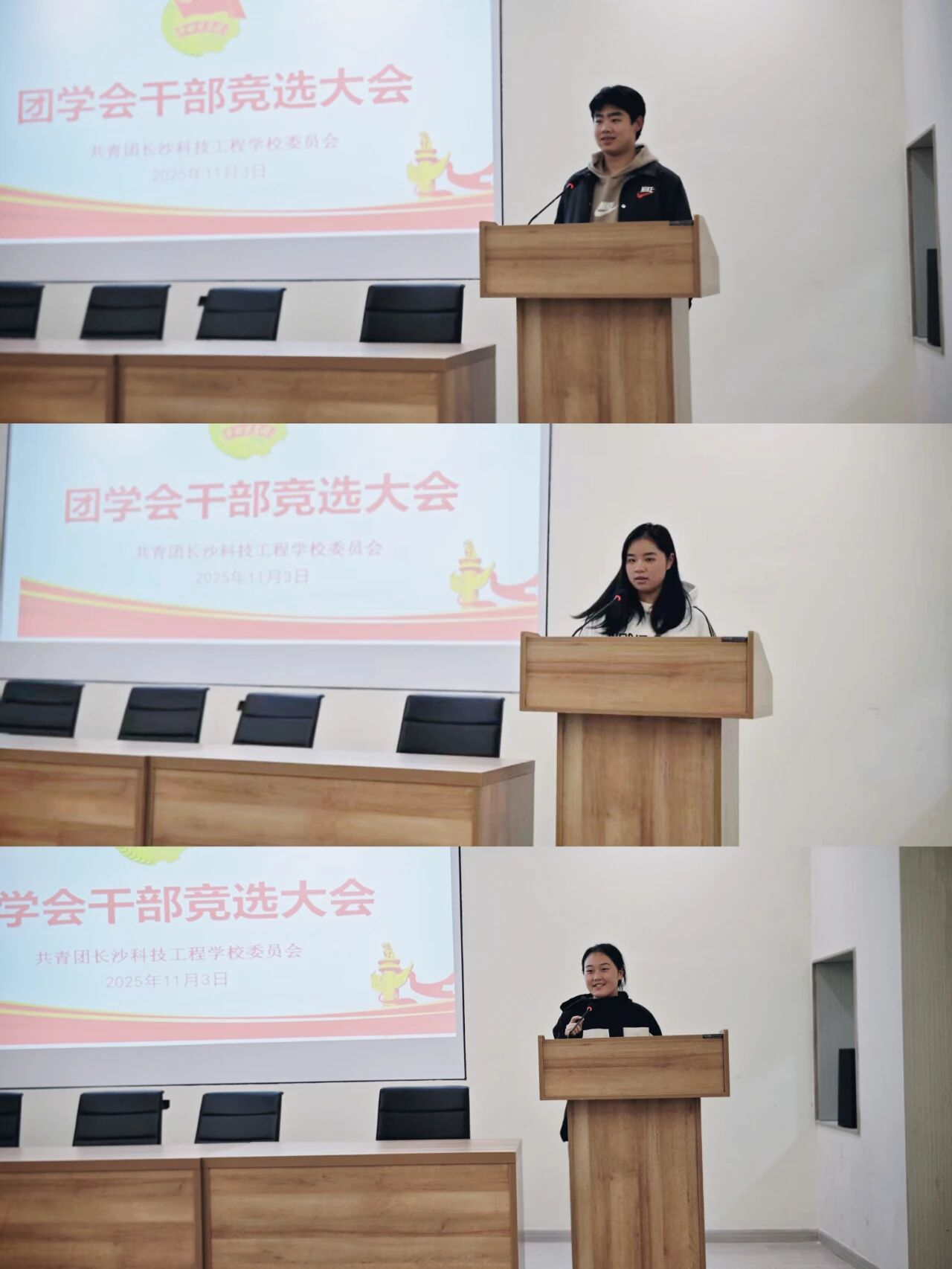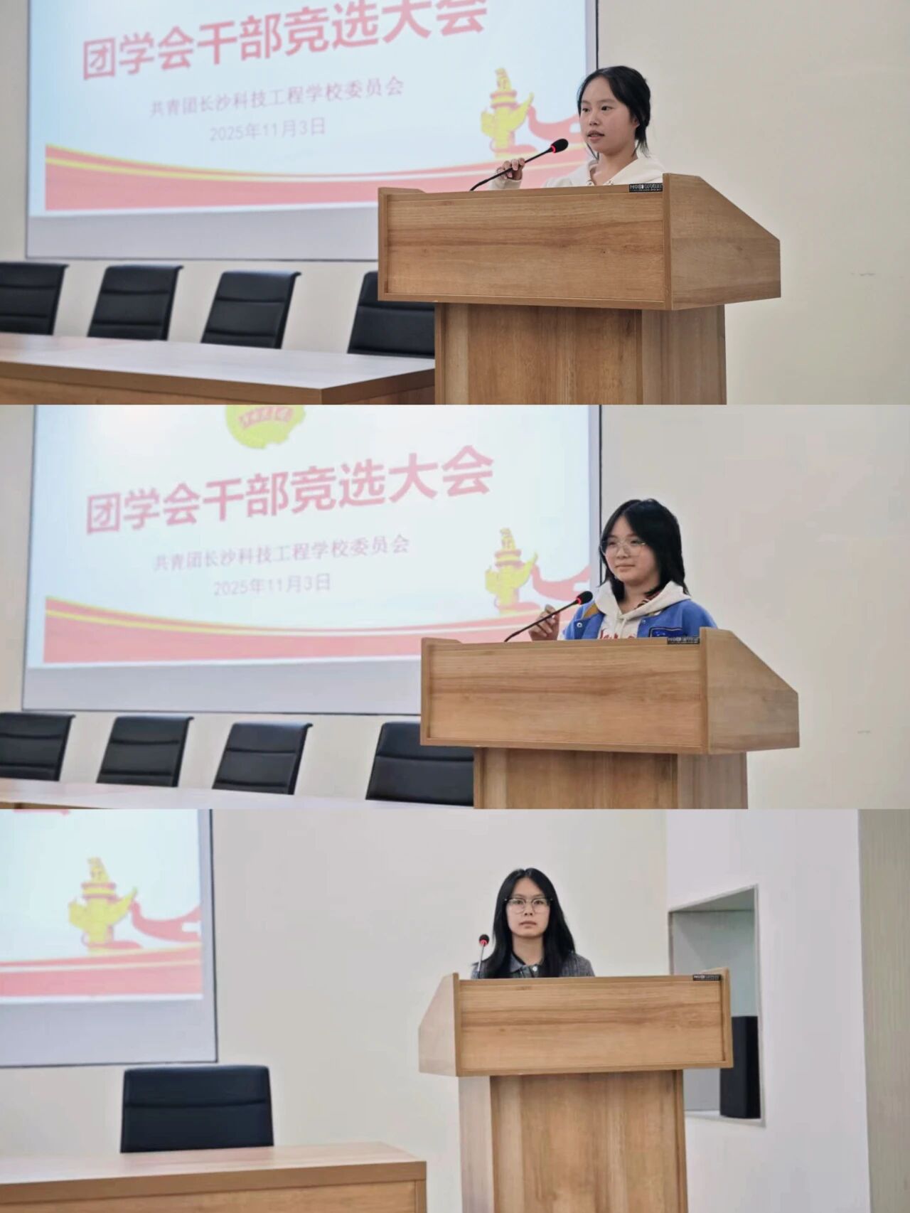 會(huì)議現(xiàn)場(chǎng),候選人身著得體正裝,精神飽滿地邁步講臺(tái)。自信有力的聲音、鮮活生動(dòng)的表述盡顯風(fēng)采:有的同學(xué)分享過往學(xué)生工作中的實(shí)踐成果與心得體悟,有的同學(xué)深入闡釋對(duì)目標(biāo)職位的理解認(rèn)知與未來規(guī)劃,用激情洋溢的演講,傳遞出為學(xué)校發(fā)展傾情奉獻(xiàn)的真摯情懷。