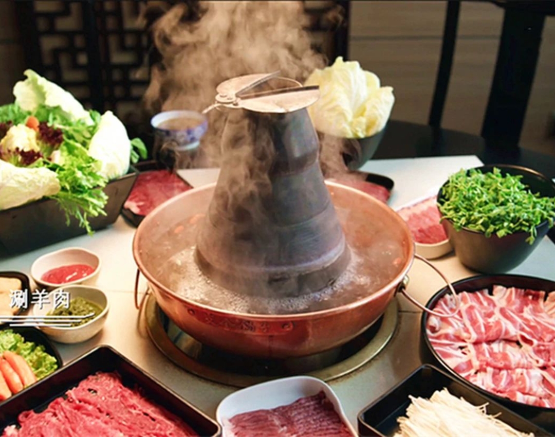 北方火鍋:北方的火鍋以清湯為主,代表性的有北京的銅鍋涮肉。北京火鍋通常使用銅鍋和炭火,湯底以清水或高湯為主,講究食材的原汁原味。涮羊肉是北京火鍋的經(jīng)典食材,薄薄的羊肉片在沸騰的湯底中稍微涮一下,蘸上醬料,鮮美無(wú)比。