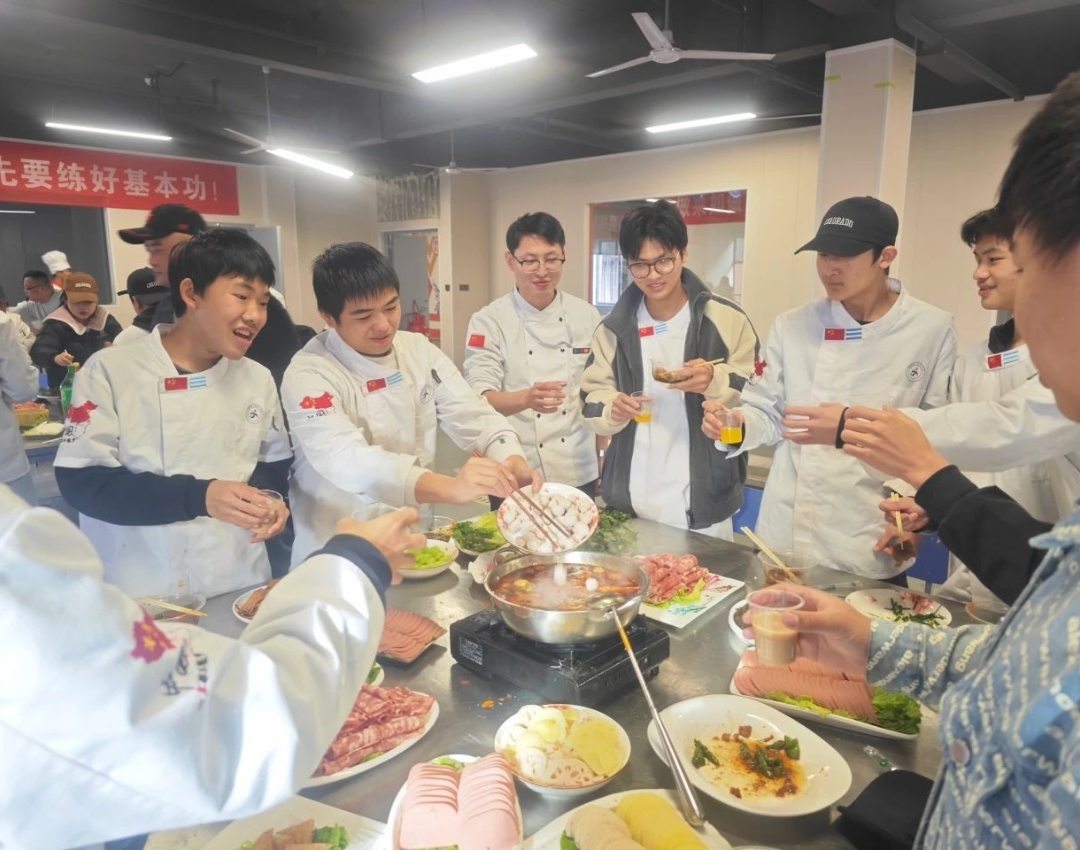 課程結(jié)束,一鍋鍋熱氣騰騰的火鍋端上桌,學(xué)生們圍坐在一起,品嘗著自己親手制作的火鍋,那種既學(xué)到了、玩到了,還吃到了的喜悅,讓整個(gè)過(guò)程變得輕松有趣。他們一邊品嘗美食,一邊分享著彼此的學(xué)習(xí)心得和趣事,笑聲與歡呼聲此起彼伏,讓整個(gè)烹飪實(shí)訓(xùn)室充滿了溫馨與歡樂(lè)。