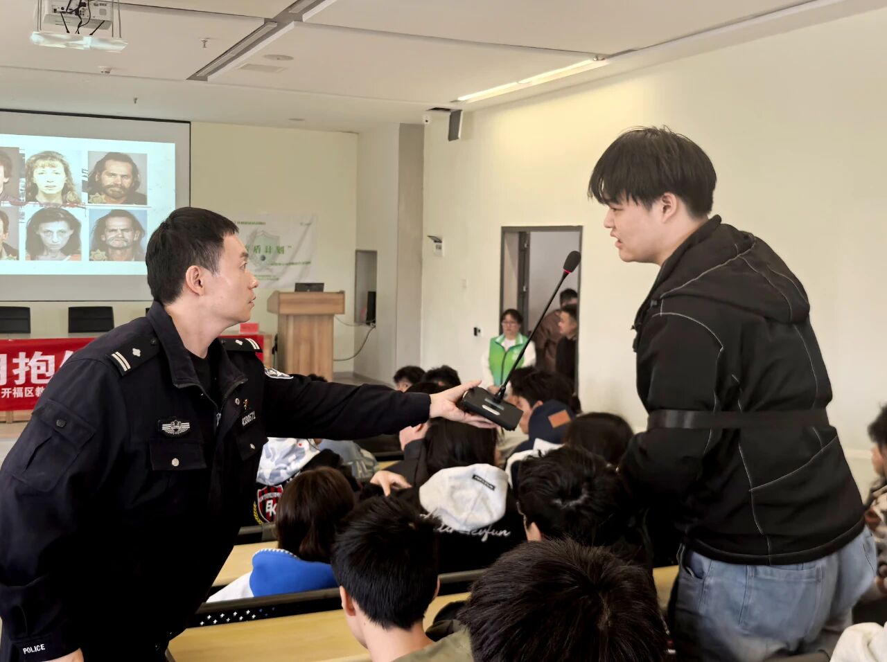 陳天樂老師以 “毒品認識” 為切入點,通過 PPT展示,詳細介紹毒品的種類、偽裝形態(tài)及危害。隨后,民警聚焦 “毒品的危害”, 從個人健康、家庭幸福、社會穩(wěn)定三個層面深入剖析,同時分享多起真實緝毒案例與吸毒人員的悲慘經(jīng)歷。觸目驚心的案例讓學(xué)生深刻認清毒品的嚴重危害,進一步筑牢遠離毒品的思想防線