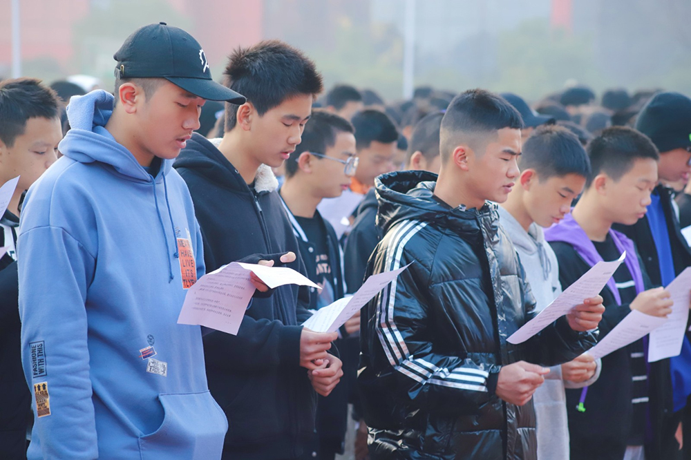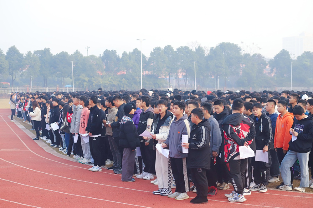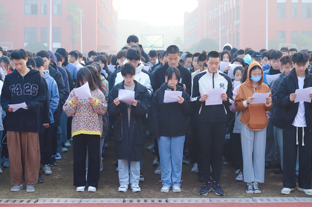 “中華人民共和國實行依法治國,建設(shè)社會主義法治國家。中華人民共和國公民在法律面前一律平等……”11月29日,長沙科技工程學(xué)校操場傳來了鏗鏘的朗讀聲。