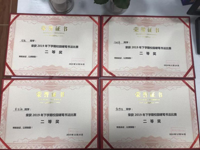 為豐富學(xué)生校園文化生活,激發(fā)學(xué)生練字的興趣及熱情,進(jìn)一步普及規(guī)范漢字的書(shū)寫,培養(yǎng)學(xué)生的書(shū)法書(shū)寫規(guī)范意識(shí),提高同學(xué)們書(shū)法書(shū)寫水平,讓學(xué)生學(xué)會(huì)創(chuàng)造美、欣賞美,營(yíng)造校園文化建設(shè)氛圍,我校近期舉行了2019年下學(xué)期學(xué)生硬筆書(shū)法比賽。