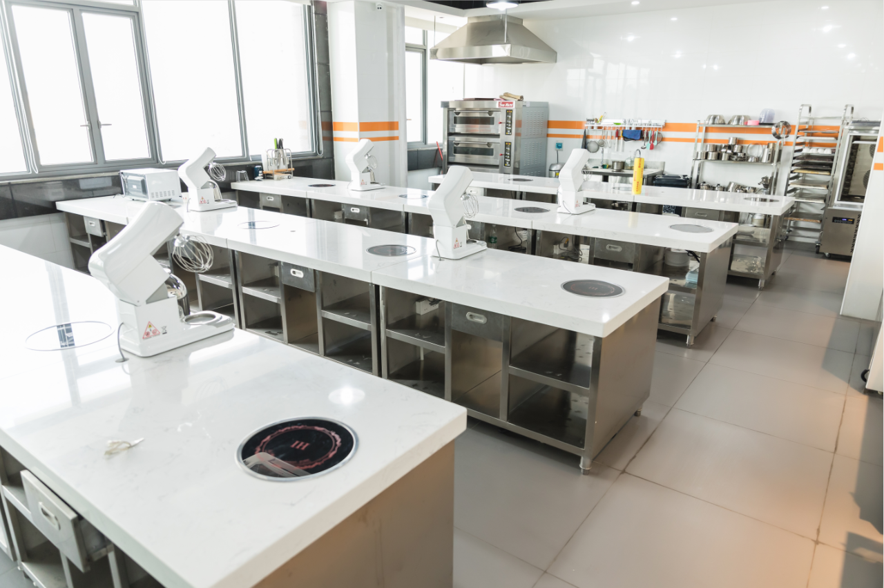 學校配備了行業(yè)領先的烹飪教學、實操設備設施,多個頂尖專業(yè)廚房和示范教室,包括模擬餐廳、大型多媒體理論教室、實訓大廳及標準展廳,深度接軌市場的“餐飲創(chuàng)業(yè)孵化中心”等。